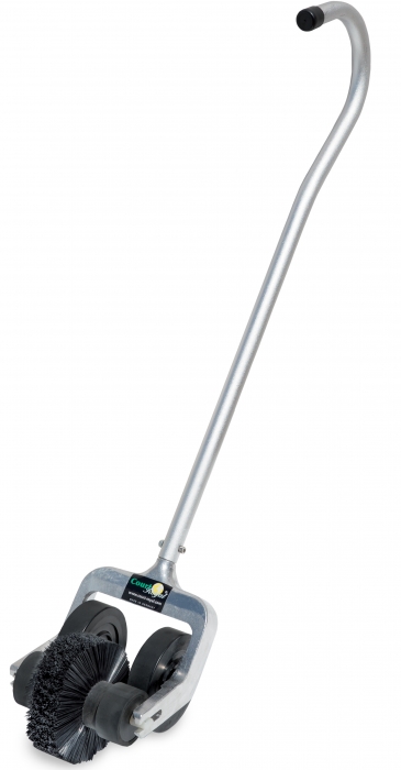 В комплекте ручка из алюминия, резиновые колеса и очиститель с щетиной.